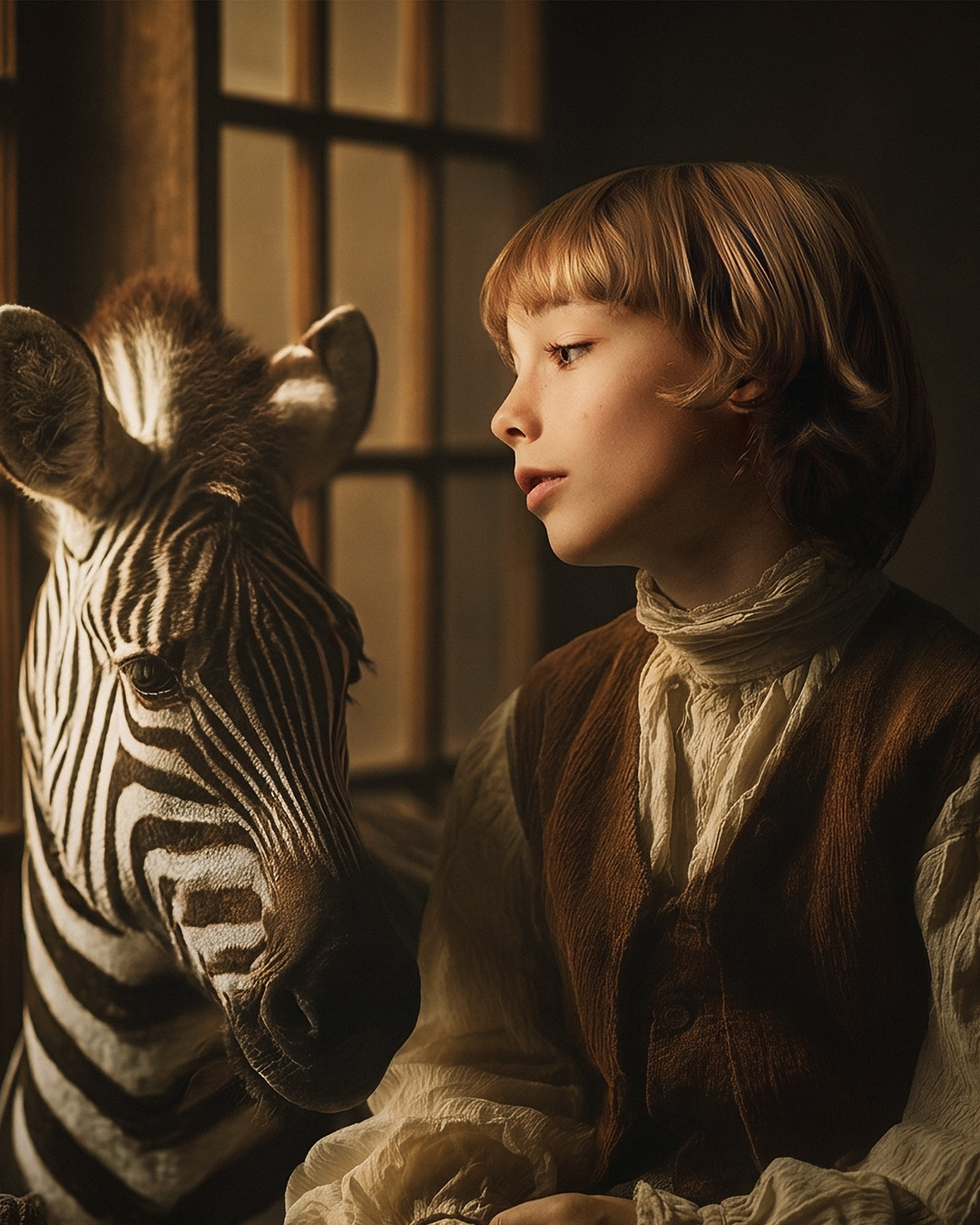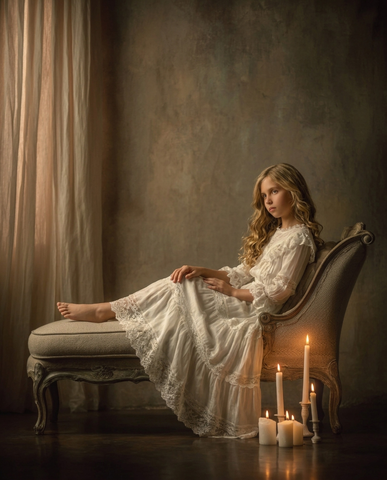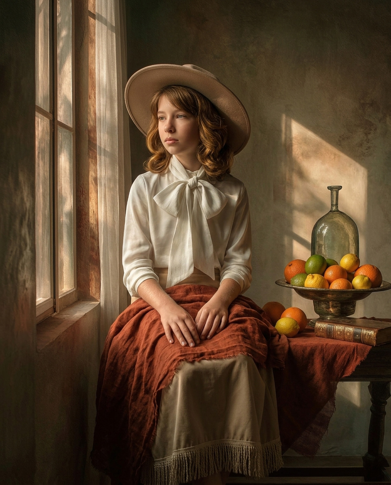 En las escenas narrativas, construyo entornos que parecen rescatados de la pintura flamenca o el claroscuro del siglo XVII, asegurando que cada sombra y cada objeto tengan una coherencia cromática absoluta con el sujeto.